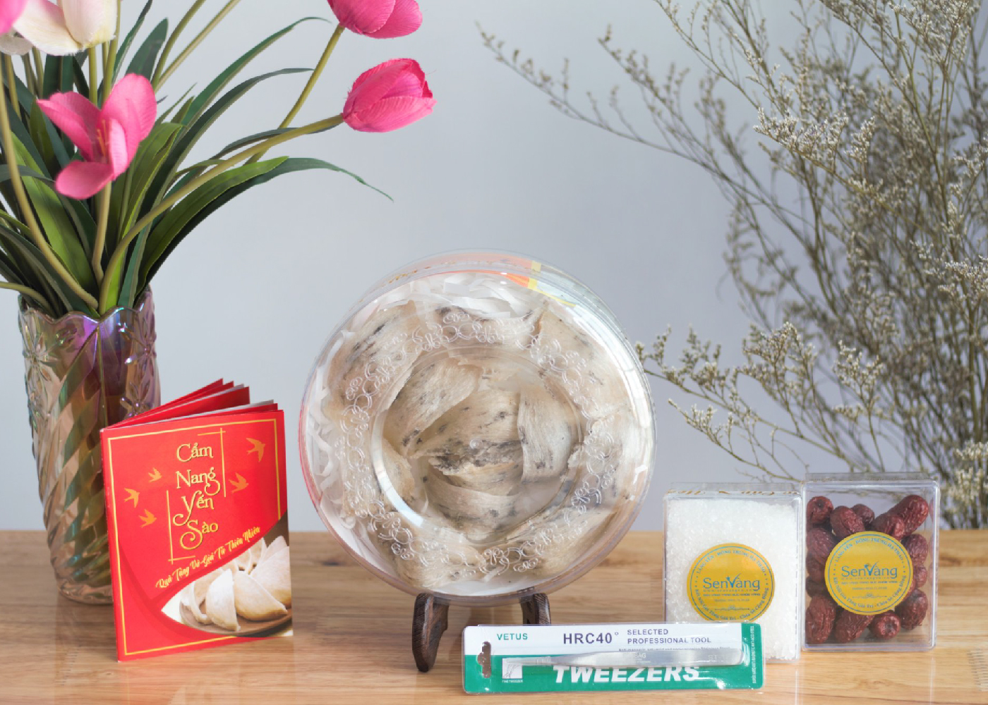 Tổ yến nguyên thủy, được lựa chọn riêng nguyên tổ to dày ít lông, độ nở nhiều, ăn có mùi tanh đặc trưng của yến và dai giòn thơm hơn các loại yến đã qua làm sạch.