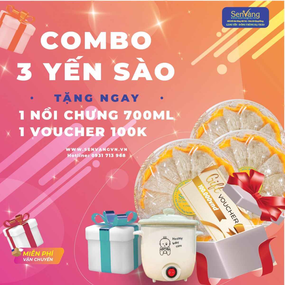 Combo 3 Yến Sào Sen Vàng 100g Quý khách nhận ngay 1 nồi chưng yến 700ml + 1 Voucher giảm giá 100k